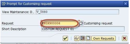 Step 6) After completing all the required information ,press save Enter your customizing request number