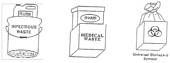 5. When there is inner and outer packaging, or containers, each container (inside and outside) will be labeled “Infectious Waste” or “Medical Waste” or display the universal Biohazard Symbol as illustrated below: